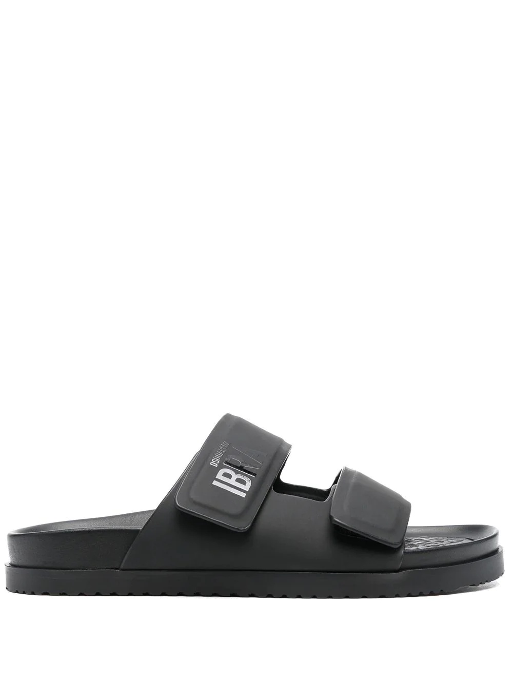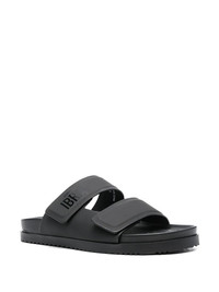 x Ibrahimović leather slides black calf leather logo-print strap open toe open back front touch-strap fastening slip-on style branded leather insole flat rubber sole Made in Italy Composition Lining: Calf Leather 100% Outer: CALFSKIN 100% Sole: Rubber 100% SIZE & FIT Measurement HEEL 0.78 in(2 cm) Sole height 0.39 in(1 cm)