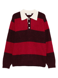 striped polo-neck sweater Highlights - Red/burgundy - Horizontal stripes - Polo collar - Front button placket - Long sleeves Imported Composition Wool 48%, Nylon 30%, Acrylic 22% SIZE & FIT Model measurements Height 6 ft 0 in(1.84 m) Bust/Chest 35.82 in(91 cm) Hips 37 in(94 cm) Waist 28.34 in(72 cm) Washing instructions Read Manufacturer Guidelines