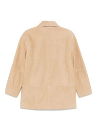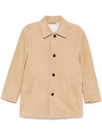 suede jacket Highlights - Sand beige - Front button fastening - Two side welt pockets - Long sleeves - When buying this unisex item, keep in mind that it is graded in standard men's sizing. Imported Composition Lining: Polyester 100% Outer: Goat Skin 100%