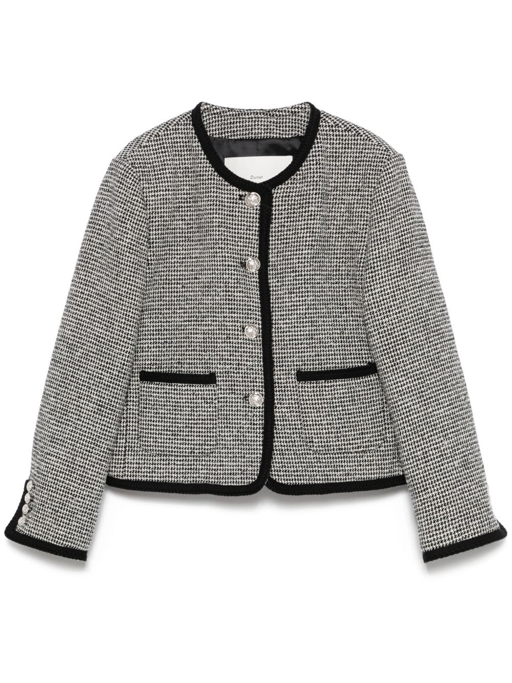 tweed jacket Highlights - Black - Front button fastening - Two front patch pockets - Buttoned cuffs - Full lining Imported Composition Outer: Wool 59%, Polyester 41% Lining: Polyester 100% SIZE & FIT Model measurements Height 5 ft 10 in(1.77 m) Bust/Chest 31.88 in(81 cm) Hips 36.22 in(92 cm) Waist 24.01 in(61 cm) FittingInformation Designed for a boxy fit, intended for a loose fit throughout Made from a midweight non-stretch fabric Washing instructions Dry Clean Only