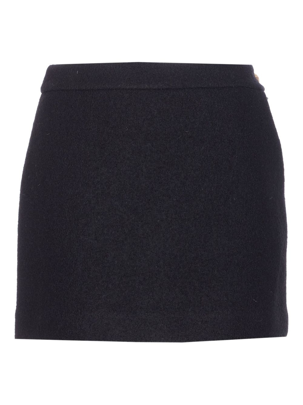zip button mini skirt Highlights - Black - Lateral zip - Button closure Imported Composition Wool 50%, Polyester 50% Washing instructions Read Manufacturer Guidelines