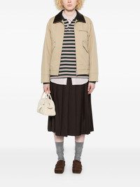 zip-up bomber jacket Highlights - Beige - Wool-blend - Zip front fastening - Two flap pockets - Leather collar - Long sleeve - Button cuffs Imported Composition Wool 59%, Polyester 41% SIZE & FIT Model measurements Height 5 ft 9 in(1.75 m) Bust/Chest 34.64 in(88 cm) Hips 36.61 in(93 cm) Waist 26.37 in(67 cm) Washing instructions Read Manufacturer Guidelines