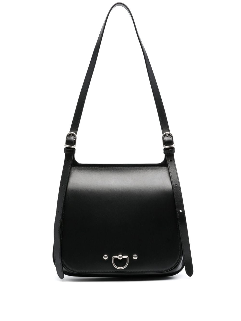 D-ring leather tote bag Highlights - Jet black - Calf leather - Smooth grain - Tonal stitching - D-ring findings - Silver-tone hardware - Adjustable top handle - Foldover top with magnetic fastening - Partitioned compartment - Internal logo patch Made in Italy Composition Outer: Calf Leather 100% SIZE & FIT Model measurements Height 5 ft 10 in(1.78 m) Bust/Chest 30.7 in(78 cm) Hips 36.22 in(92 cm) Waist 25.59 in(65 cm) Measurement DEPTH 2.36 in(6 cm) HEIGHT 7.87 in(20 cm) STRAP 18.5 in(47 cm) WIDTH 9.84 in(25 cm)