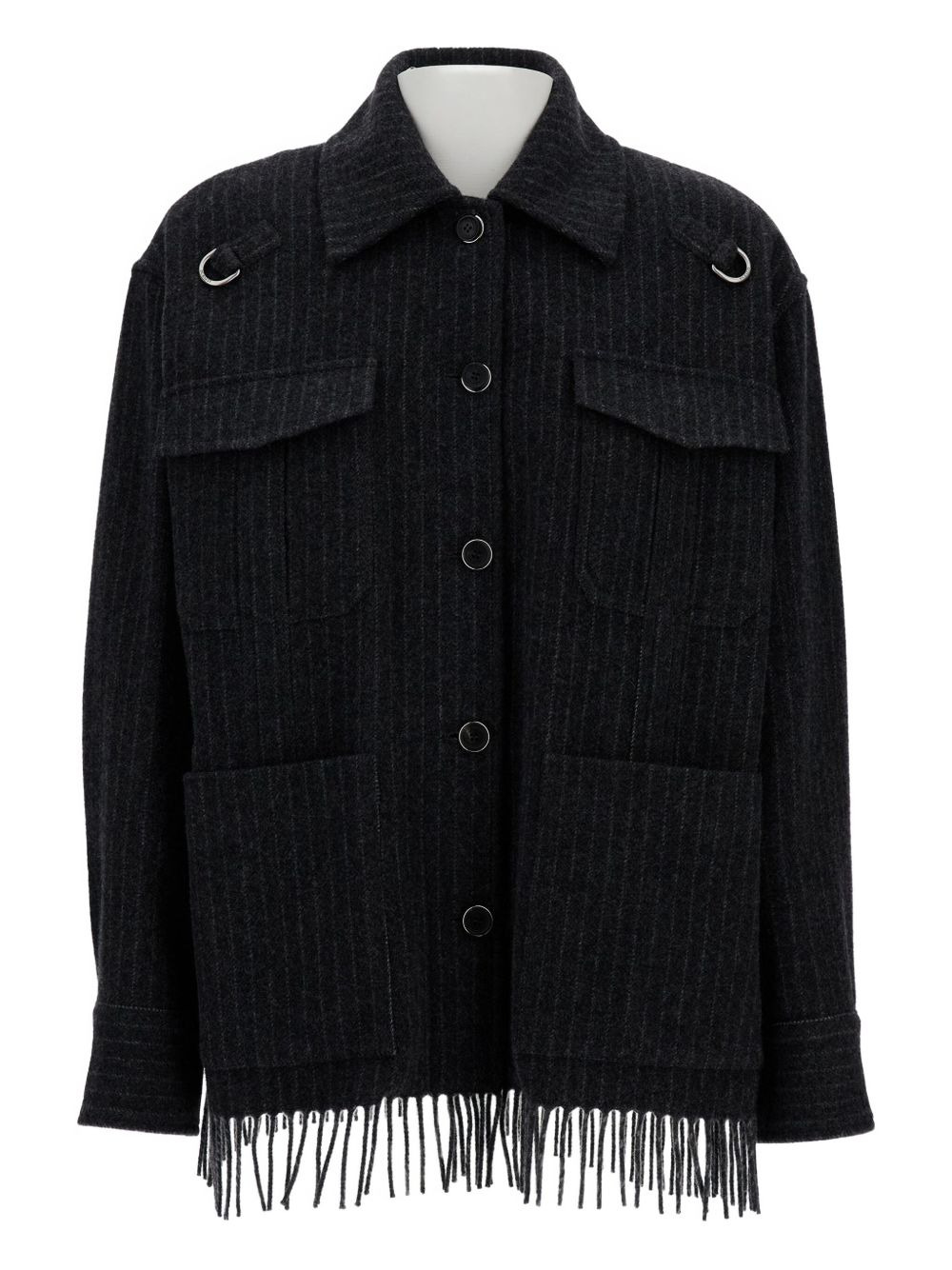 pinstripe fringed jacket Highlights - Black - Pinstripe pattern - Fringe trim - Button fastening - Flap pockets Made in Italy Composition Virgin Wool 100% Washing instructions Read Manufacturer Guidelines