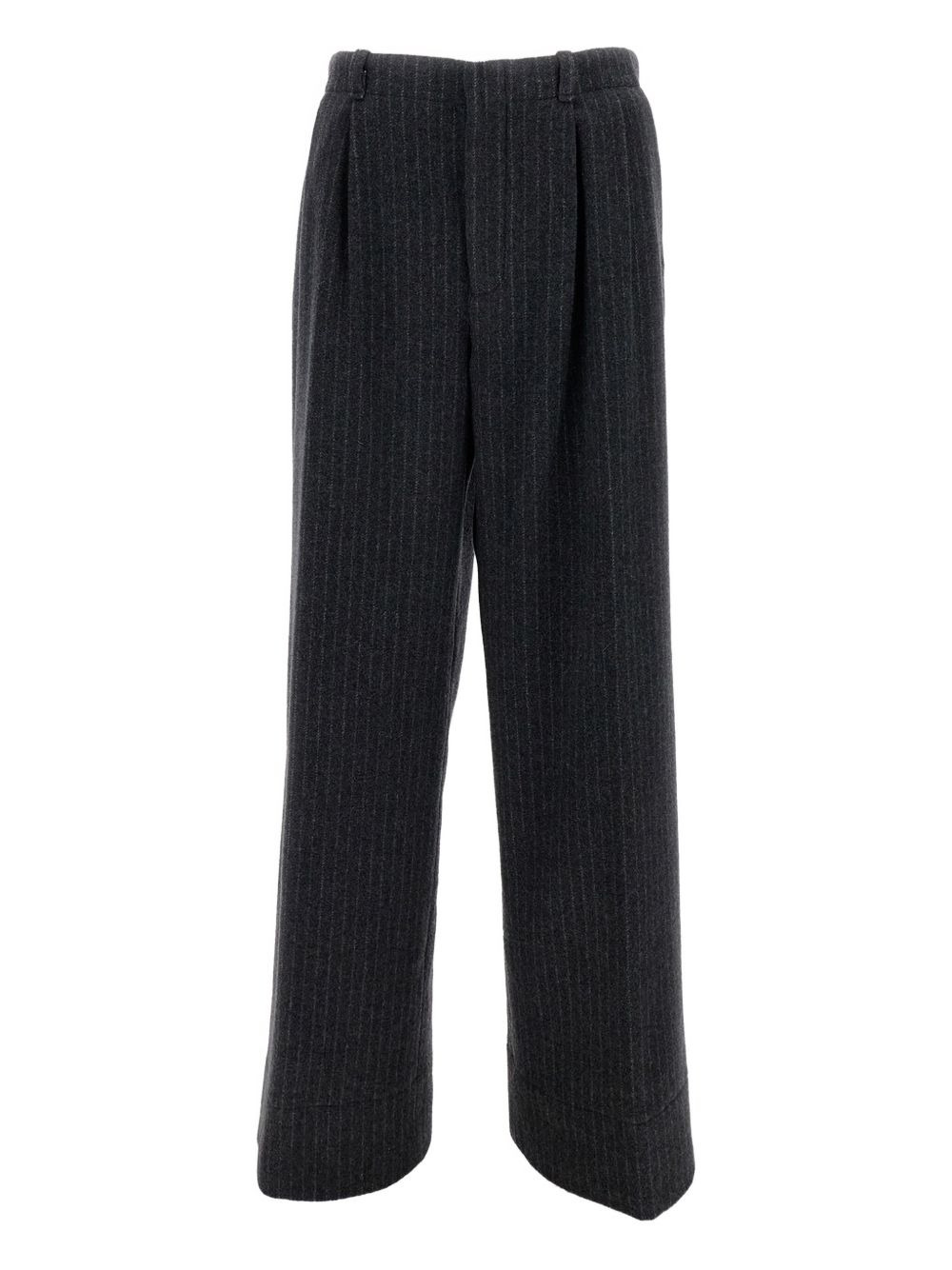 pinstripe pleated trousers Highlights - Dark grey - Pinstripe pattern - Pleated front - Button fly - Flap pockets Made in Italy Composition Wool 100% Washing instructions Read Manufacturer Guidelines