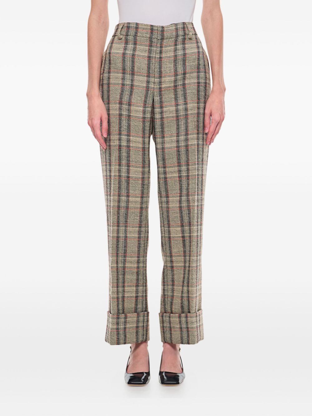tartan-check cuffed trousers Highlights - Grey beige - Tartan check pattern - Cuffed hems - Straight leg - High waist - Button fly Made in Italy Composition Wool 100% Washing instructions Read Manufacturer Guidelines