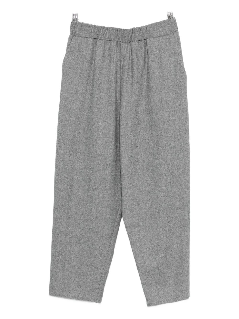 elasticated-waist trousers Highlights - Silver grey - Elastic waistband - Side pockets - Wool Made in Italy Composition Wool 100% SIZE & FIT Model measurements Height 5 ft 11 in(1.8 m) Bust/Chest 31.49 in(80 cm) Hips 36.61 in(93 cm) Waist 24.4 in(62 cm) Washing instructions Read Manufacturer Guidelines