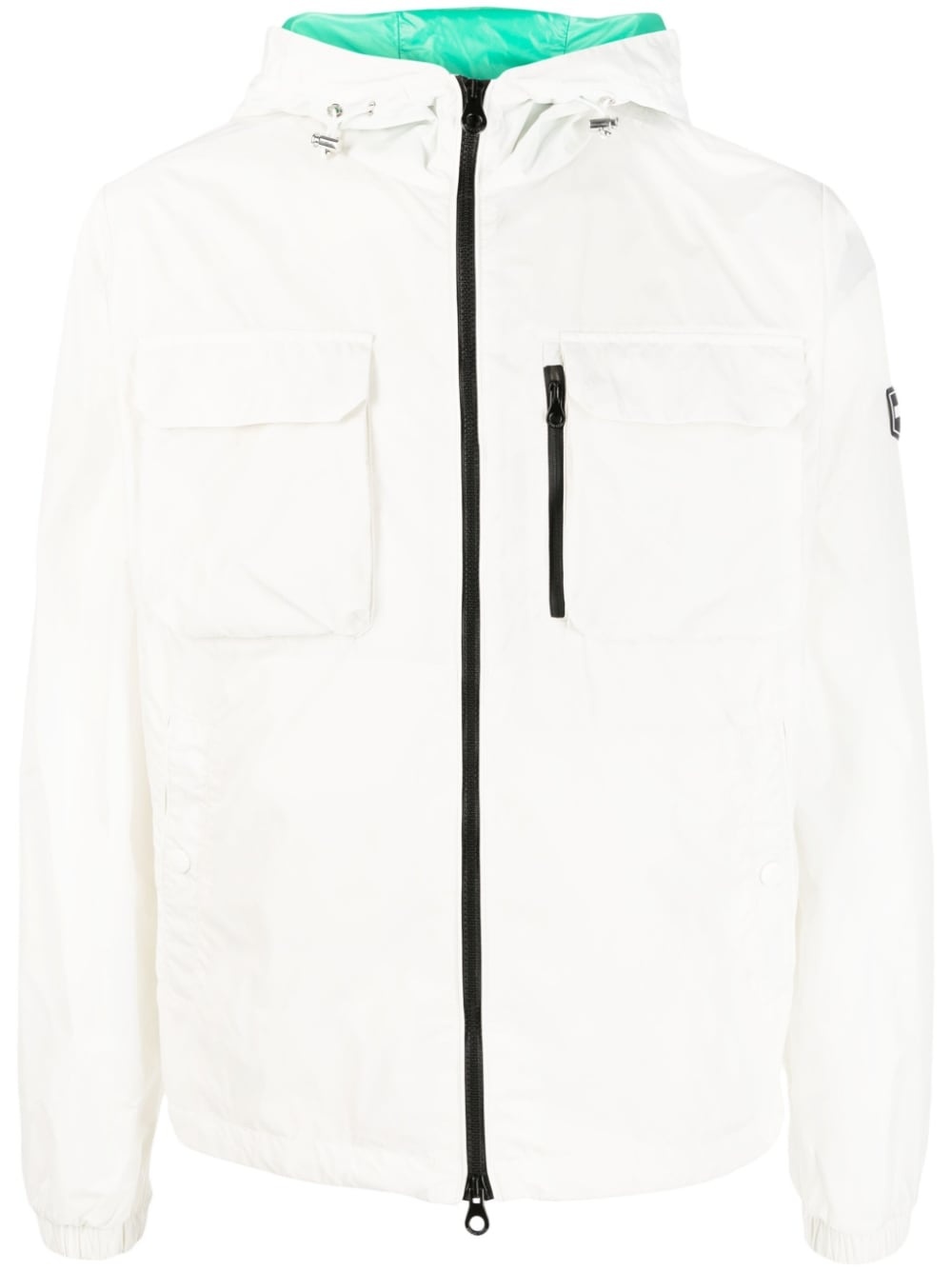 logo-patch zip-up hooded jacket Highlights - Off-white - Logo patch at the sleeve - Drawstring hood - Front two-way zip fastening - Two chest flap pockets - Zip-fastening chest pocket - Two press-stud fastening side pockets - Elasticated cuffs - Straight hem Imported Composition Outer: Polyamide 100% Lining: Polyamide 100% SIZE & FIT Model measurements Height 6 ft 1 in(1.85 m) Bust/Chest 38.58 in(98 cm) Hips 37 in(94 cm) Waist 30.31 in(77 cm) Washing instructions Machine Wash