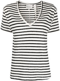 striped V-neck T-shirt Highlights - Off-white/black - Cotton-linen blend - Horizontal stripe pattern - V-neck - Short sleeves - Straight hem Imported Composition Linen/Flax 50%, Cotton 50% SIZE & FIT Model measurements Height 5 ft 11 in(1.8 m) Bust/Chest 33.07 in(84 cm) Hips 37.4 in(95 cm) Waist 25.19 in(64 cm) FittingInformation Designed for a relaxed fit, this piece allows for comfort and movement when worn Made from a midweight non-stretch fabric, this piece offers minimal elasticity when worn This piece fits true to size – take your usual size Washing instructions Machine Wash
