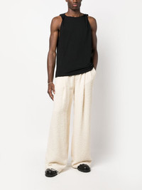 boucle wide-leg trousers Highlights - Ecru - Cotton blend - Boucle design - Pleat detailing - Drawstring waist - Two side slash pockets - Two rear welt pockets - Wide leg - Frayed brim - When buying this unisex item, keep in mind that it is graded in standard men's sizing. Imported Composition Cotton 84%, Polyamide 9%, Polyester 7% SIZE & FIT Model measurements Height 5 ft 10 in(1.78 m) Bust/Chest 33.46 in(85 cm) Hips 36.22 in(92 cm) Waist 23.22 in(59 cm) FittingInformation This piece is unisex and is designed with a wide-leg, whether you usually select women's or men's sizes Adjust this piece’s waistband to your preference using the drawstring Made from a midweight non-stretch fabric