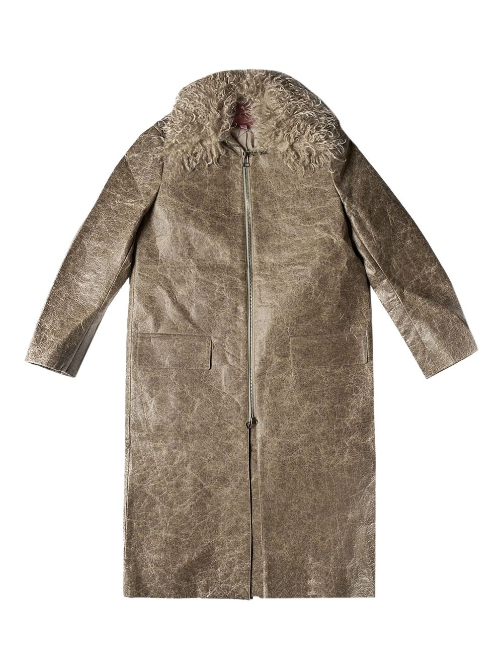 Fond "White" coat Highlights - Natural brown - Front zip fastening - Two front flap pockets - Faux-fur collar - Long sleeves - Central rear vent - Straight hem Imported Composition Lining: Polyester 100% Outer: Recycled Polyester 85%, Polyester 15%