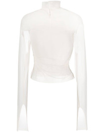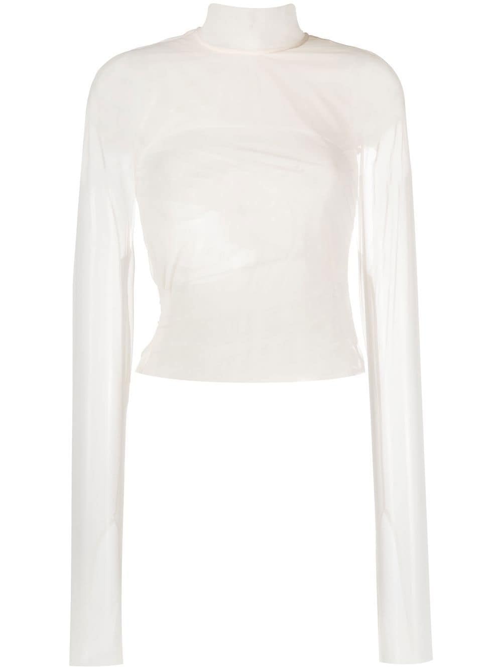 high-neck mesh top white high neck keyhole detail to the rear rear button fastening extra-long sleeves semi-sheer construction Made in Italy Composition Polyester 100%