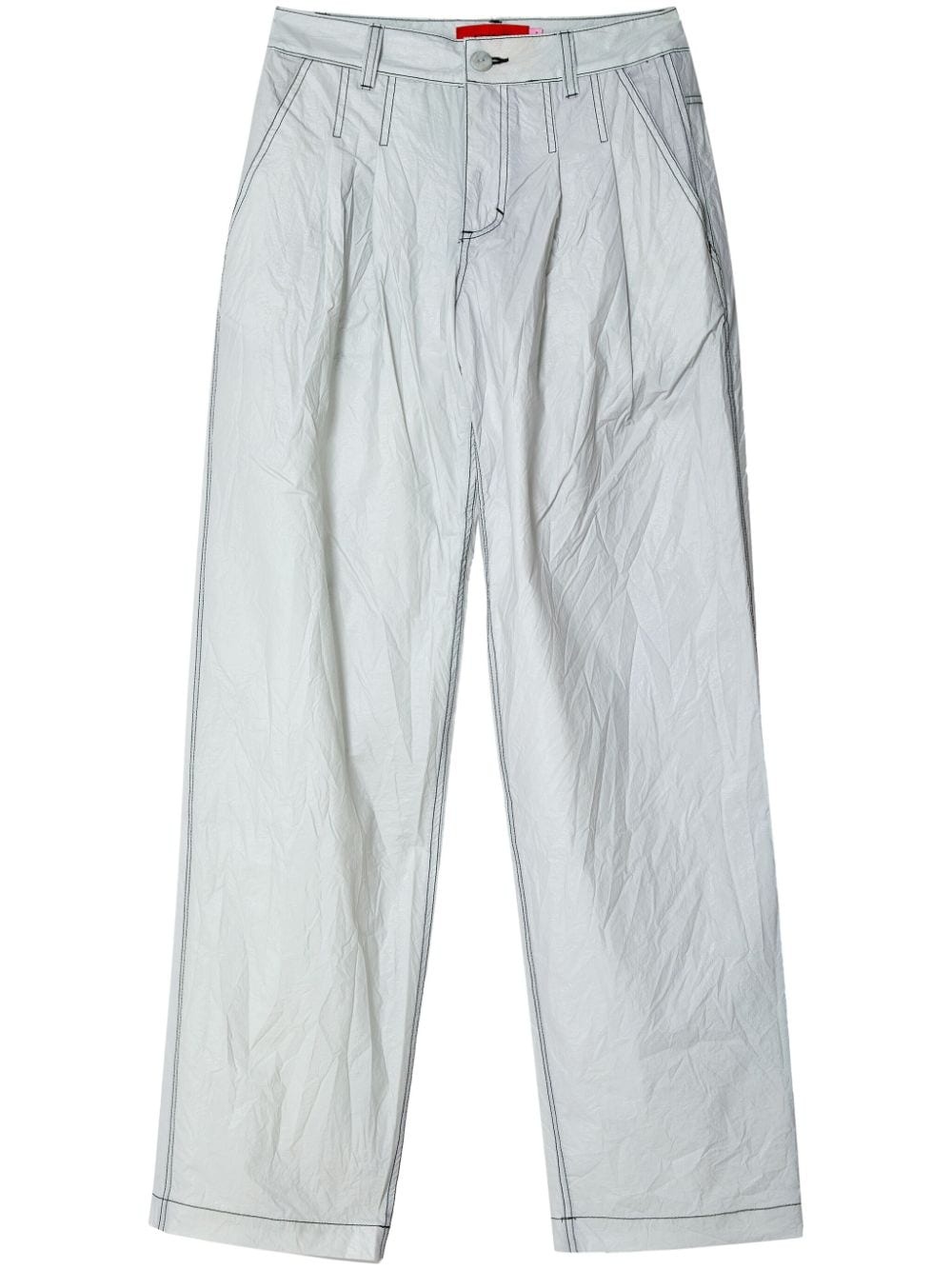 high-shine straight-leg trousers Highlights - Sky blue - High-shine finish - Contrast stitching - Mid-rise - Concealed fly and button fastening - Belt loops - Straight leg - Two diagonal pockets to the sides - Two rear patch pockets Made in United States Composition Nylon 60%, Polyurethane 40%