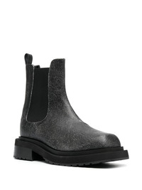 Mike cracked-effect leather boots Highlights - Smoky black - Cracked effect - Elasticated side panels - Pull-tab at the heel - Flat rubber sole - Round toe - Slip-on style Imported Composition Outer: Bos Taurus 70%, Elastane 30% Lining: Leather 100% Sole: Rubber 100% SIZE & FIT Measurement CIRCUMFERENCE 10.23 in(26 cm) HEEL 1.96 in(5 cm) HEIGHT 6.69 in(17 cm) Sole height 1.18 in(3 cm)