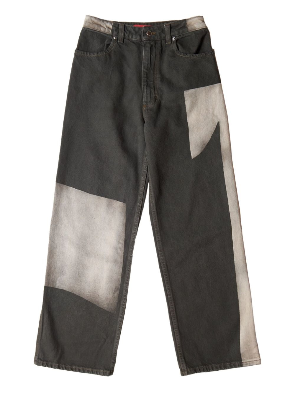 patchwork wide-leg jeans Highlights - Black - Patchwork detailing - Front button and zip fastening - Wide leg - Classic five pockets - Belt loops Made in United States Composition Cotton 100% Washing instructions Read Manufacturer Guidelines