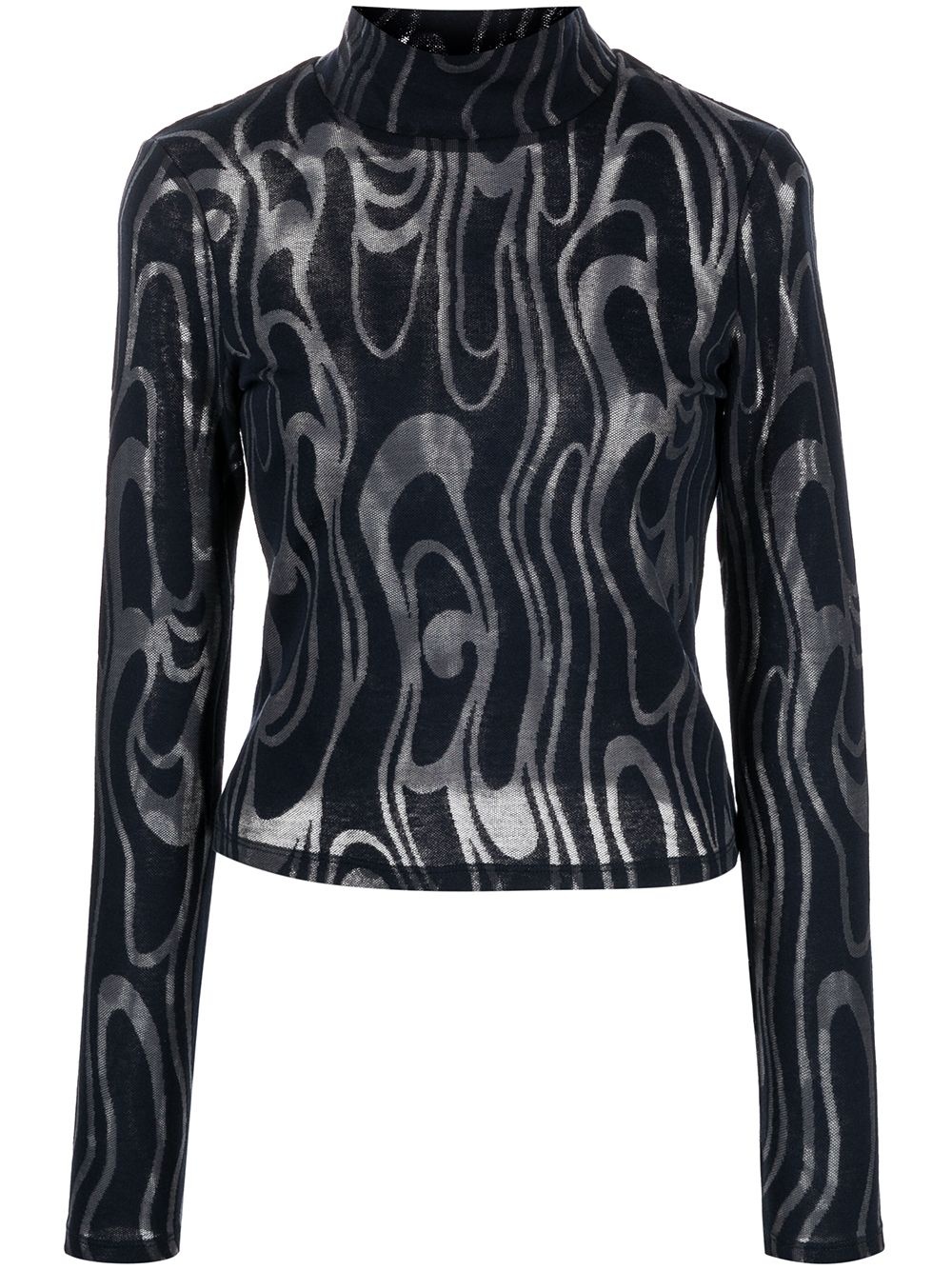 Shrunk turtleneck long-sleeve top midnight blue abstract pattern print funnel neck long sleeves straight hem Imported Composition Cotton 82%, Polyester 18% SIZE & FIT Model measurements Height 5 ft 10 in(1.77 m) Bust/Chest 29.92 in(76 cm) Hips 35.03 in(89 cm) Waist 24.01 in(61 cm) Measurement SLEEVE LENGTH 23.62 in(60 cm) Shoulder Width 12.2 in(31 cm) LENGTH 18.5 in(47 cm) BUST 27.55 in(70 cm) FittingInformation This piece fits true to size. We recommend you get your regular size Designed for a close fit at the bust, waist and hips Made with a lightweight stretch fabric