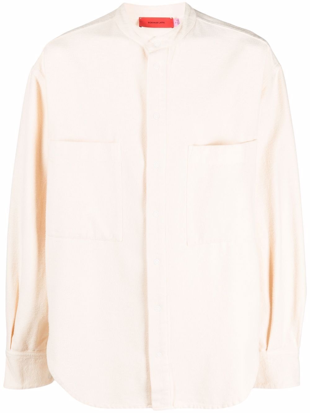 snap button down shirt Highlights - Cream - Cotton - Collarless - Concealed front press-stud fastening - Long sleeves - Curved hem - When buying this unisex item, keep in mind that it is graded in standard men's sizing Imported Composition Cotton 100% SIZE & FIT Model measurements Height 5 ft 10 in(1.78 m) Bust/Chest 31.49 in(80 cm) Hips 36.22 in(92 cm) Waist 25.59 in(65 cm) FittingInformation This piece is unisex. Please take care when selecting your size Designed for a loose fit for men and an oversized fit for women Made with a mid-weight non-stretch fabric Washing instructions Machine Wash