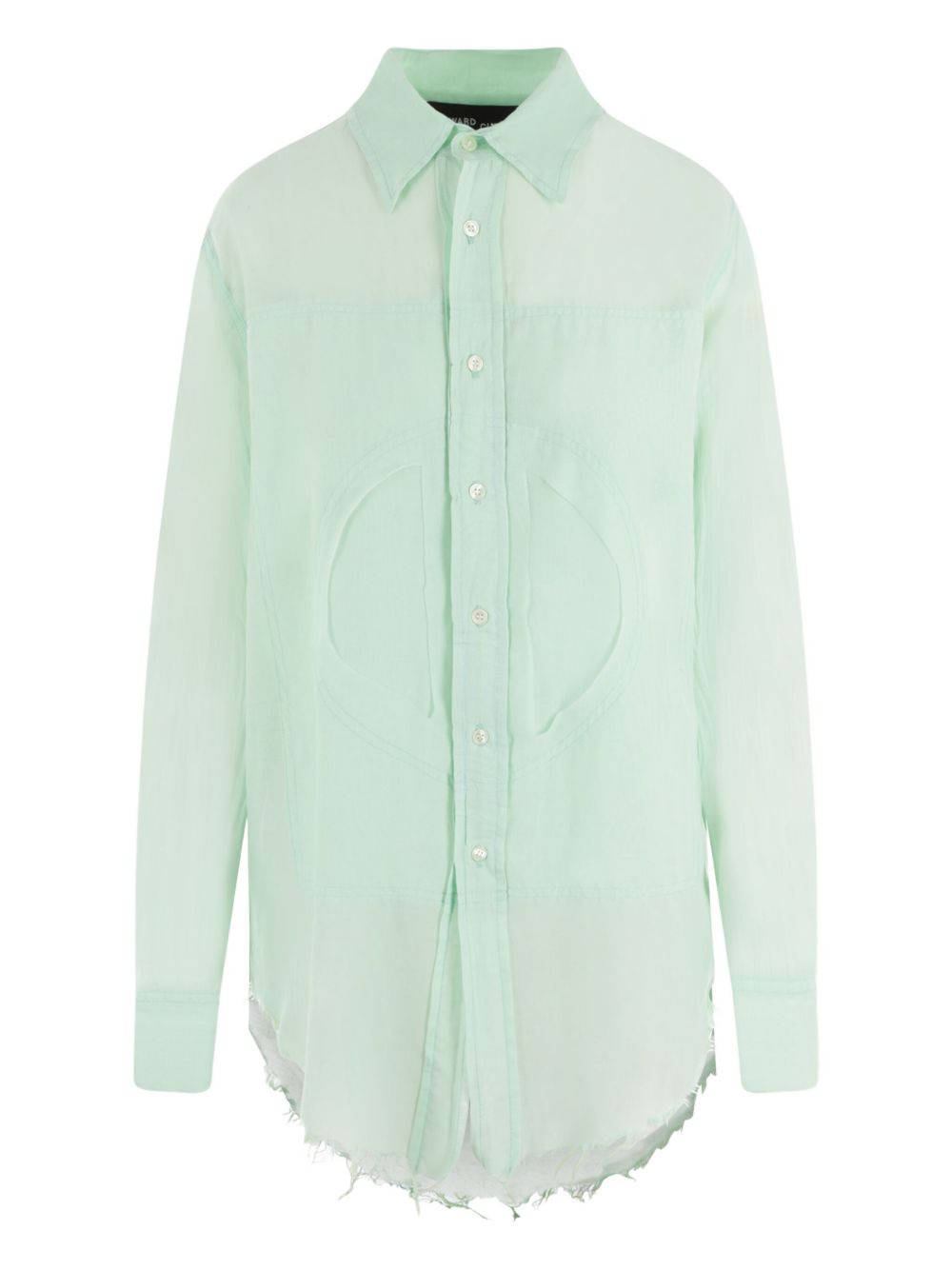 frayed-edge button-down shirt Highlights - Light green - Frayed edge - Classic collar - Front button fastening - Long sleeves - Buttoned-cuff sleeves - Curved hem Imported Composition Fabric 100% Washing instructions Read Manufacturer Guidelines