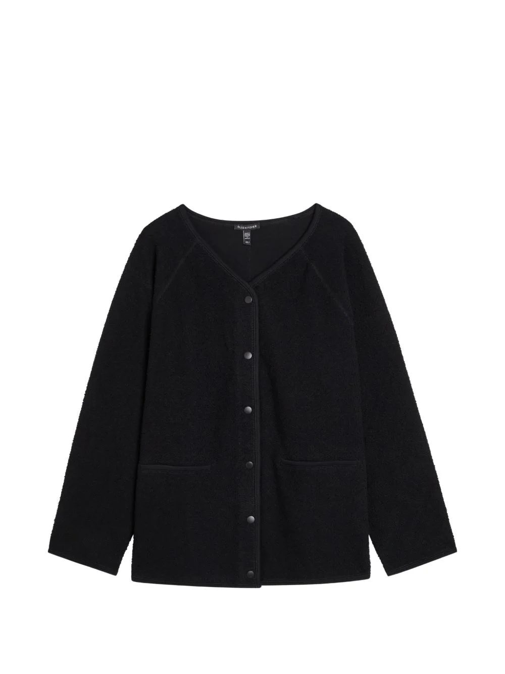snap-button jacket Highlights - Black - V-neck - Snap-button fastening - Front pockets - Long sleeves Imported Composition Organic Cotton 97%, Spandex/Elastane 3% Washing instructions Machine Wash