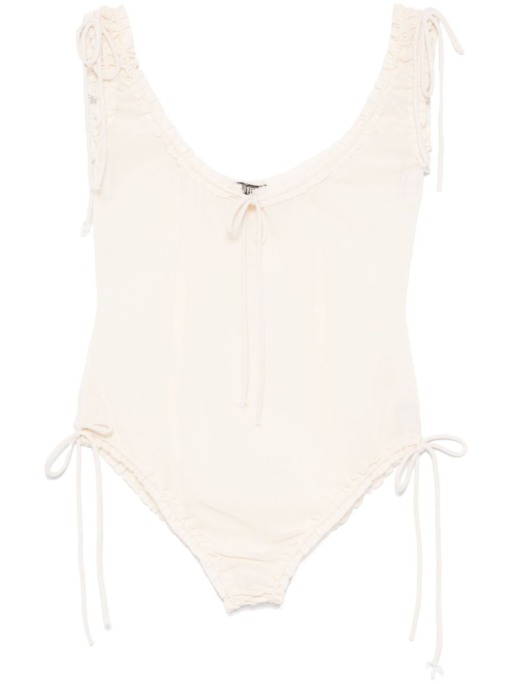 cotton bodysuit Highlights - Ecru - Cotton - Semi-sheer construction - Concealed press-stud fastening - Drawstring neck - Ruched detailing - Sleeveless - Drawstring hem - Unlined - Just a reminder that this piece must be tried on over your own garments. Made in United States Composition Cotton 100% SIZE & FIT Model measurements Height 5 ft 9 in(1.75 m) Bust/Chest 31.88 in(81 cm) Hips 34.64 in(88 cm) Waist 24.01 in(61 cm) FittingInformation Designed for a slim fit that sits just away from the body offering a close yet comfortable fit The adjustable drawstring means that you can adjust this piece’s fit to suit your comfort and preference Made from a lightweight non-stretch fabric