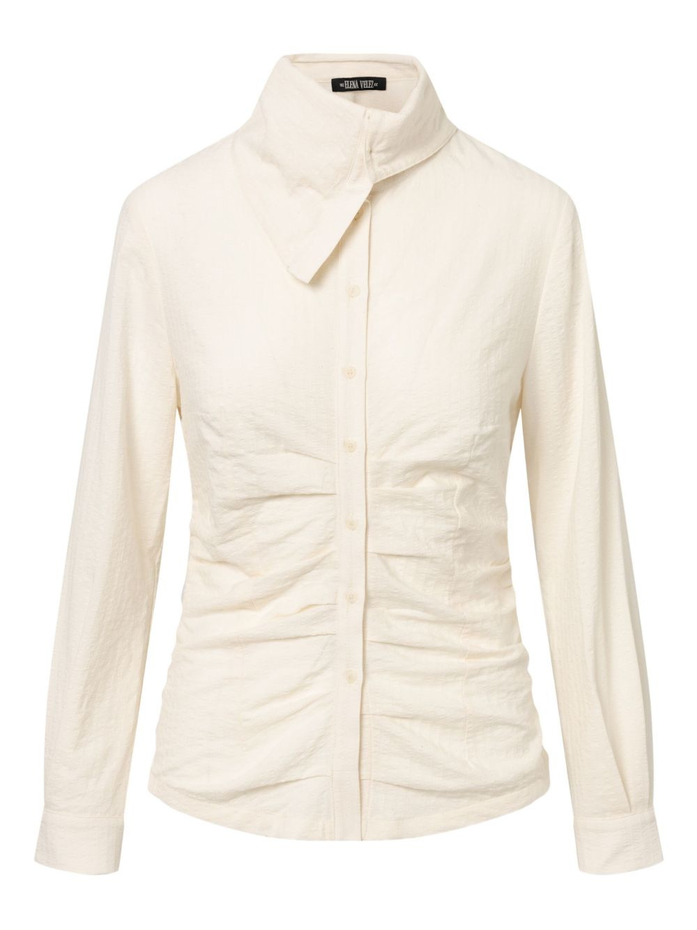 gathered button-up shirt Highlights - Off-white - Gathered neckline - Button fastening - Long sleeves - Buttoned cuffs Made in United States Composition Cotton 100% Washing instructions Read Manufacturer Guidelines