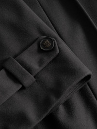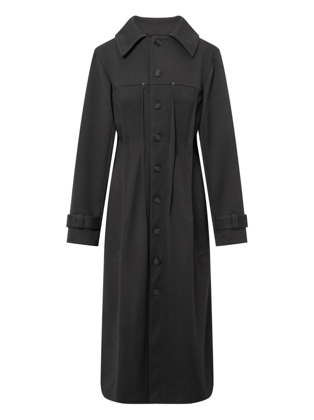 pleated button-fastening coat Highlights - Black - Pleated detail - Button fastening - Polo collar - Long sleeves - Buttoned cuffs Made in United States Composition Polyester 67%, Rayon 15%, Cotton 14%, Elastane 4% Washing instructions Read Manufacturer Guidelines