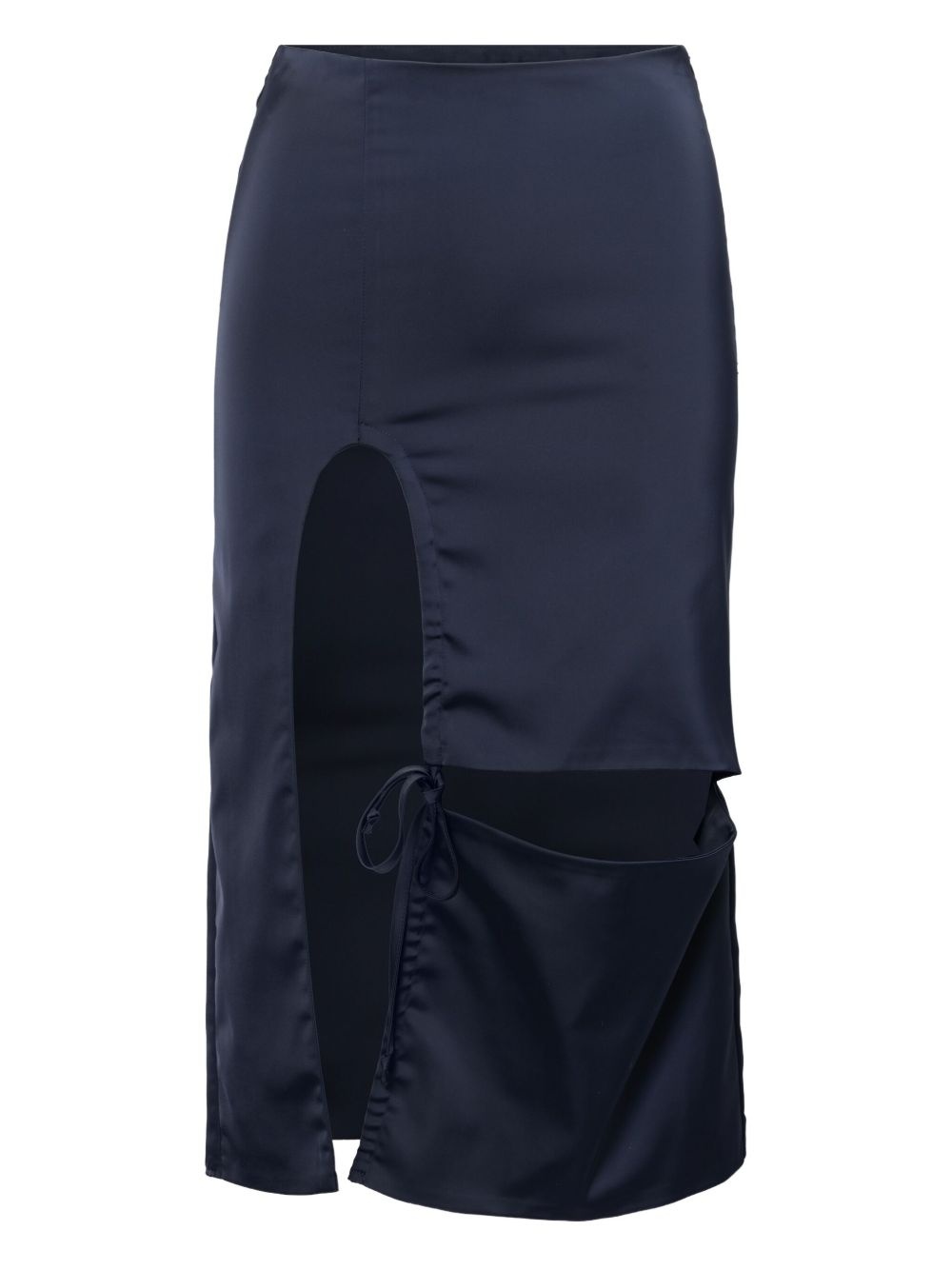 satin midi skirt Highlights - Blue - Side zip fastening - Front tie fastening - Cut-out detailing Made in United States Composition Polyamide 100%