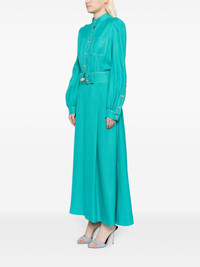 A-line belted maxi dress Highlights - Aqua blue - High neck - Front button fastening - Long sleeves - Buttoned cuffs - Two chest patch pockets - Belted waist - Pleated skirt - Ankle-length - Straight hem Made in Italy Composition Outer: Viscose 61%, Polyester 39% SIZE & FIT Model measurements Height 5 ft 9 in(1.76 m) Bust/Chest 31.1 in(79 cm) Hips 35.03 in(89 cm) Waist 24.4 in(62 cm) FittingInformation Designed for a close fit at the chest and waist with a loose fit at the hip The belt offers adjustability for fitted preferences Made from a midweight non-stretch fabric This piece fits true to size – take your usual size