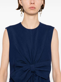 bow detail dress Highlights - Navy blue - Concealed rear hook and zip fastening - Bow detailing Made in Italy Composition Cotton 61%, Viscose 39% SIZE & FIT Model measurements Height 5 ft 10 in(1.78 m) Bust/Chest 29.92 in(76 cm) Hips 34.64 in(88 cm) Waist 24.8 in(63 cm) FittingInformation Designed for a close fit at the chest and waist with a loose fit at the hip The dart stitching adds structure and a closer fit in the torso of this piece Made from a midweight non-stretch fabric