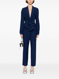bow-detail jumpsuit Highlights - Empire blue - Concealed rear hook and zip fastening - Two side inset pockets - Buttoned cuffs Made in Italy Composition Organic Cotton 61%, Viscose 39% SIZE & FIT Model measurements Height 5 ft 10 in(1.78 m) Bust/Chest 29.92 in(76 cm) Hips 34.64 in(88 cm) Waist 24.8 in(63 cm) FittingInformation Designed for a slim fit that sits just away from the body offering a close yet comfortable fit Made from a midweight non-stretch fabric Washing instructions Dry Clean Only