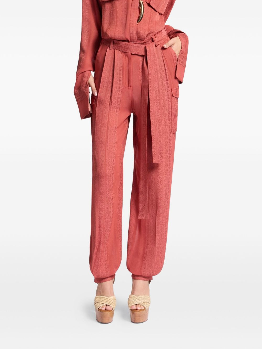 cargo-pocket belted trousers Highlights - Coral red - Jacquard pattern - Cargo pockets - Belted waist - Pleated front Imported Composition Viscose 100% Washing instructions Read Manufacturer Guidelines