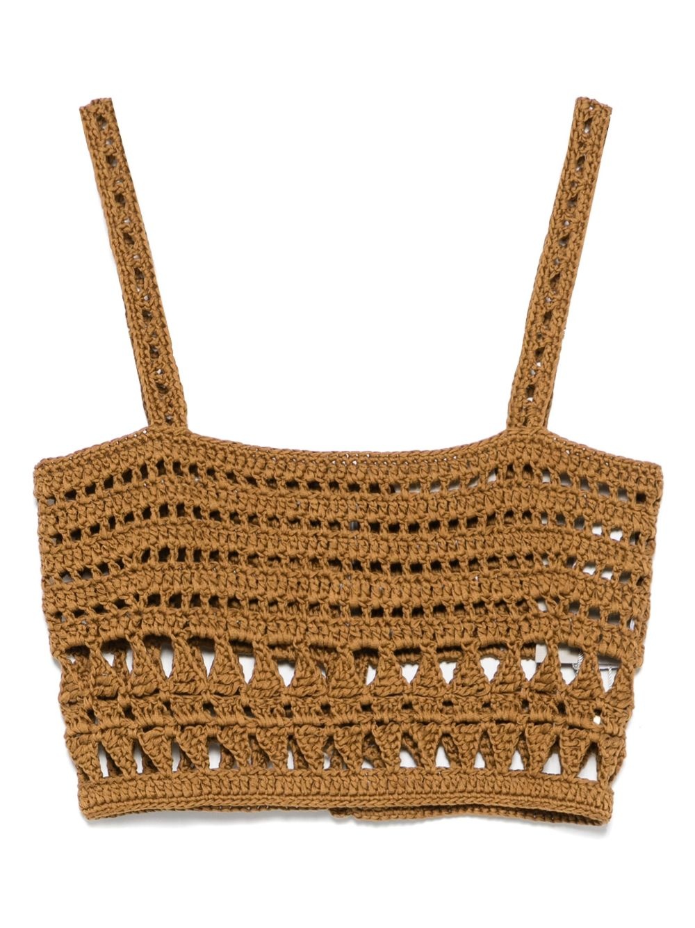 cotton top Highlights - Brown - Thin shoulder straps - Cut-out detailing - Cropped Made in Italy Composition Cotton 100% SIZE & FIT Model measurements Height 5 ft 10 in(1.79 m) Bust/Chest 33.07 in(84 cm) Hips 35.82 in(91 cm) Waist 24.01 in(61 cm) FittingInformation Designed for a close fit throughout Made with a midweight knit, this piece offers some stretch
