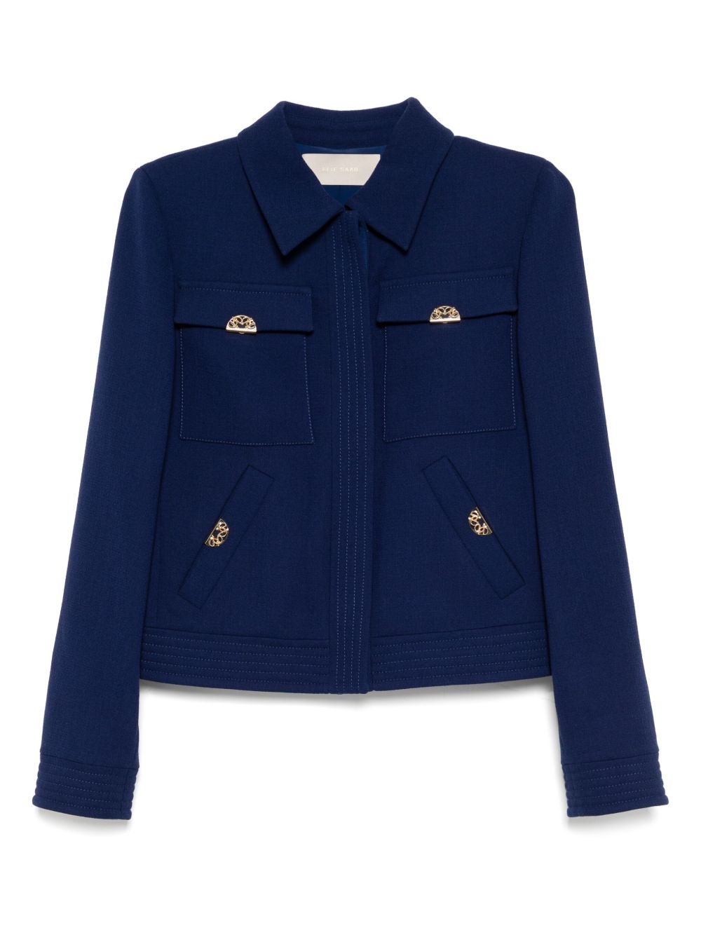 crepe jacket Highlights - Empire blue - Front button fastening - Two button-fastening chest pockets - Two side welt pockets Made in Italy Composition Outer: Virgin Wool 100% Lining: Acetate 74%, Silk 26%