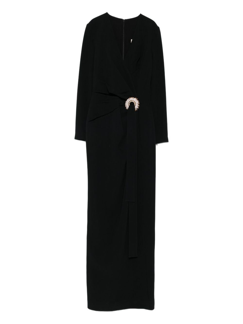 crystal-embellished wrap maxi evening dress Highlights - Black - Wrap effect - Side cut-outs - Crystal embellishment - Long sleeves - Thigh-high slit Imported Composition Outer: Silk 44%, Viscose 28%, Acetate 26%, Elastane 2% Lining: Silk 100% Washing instructions Dry Clean Only