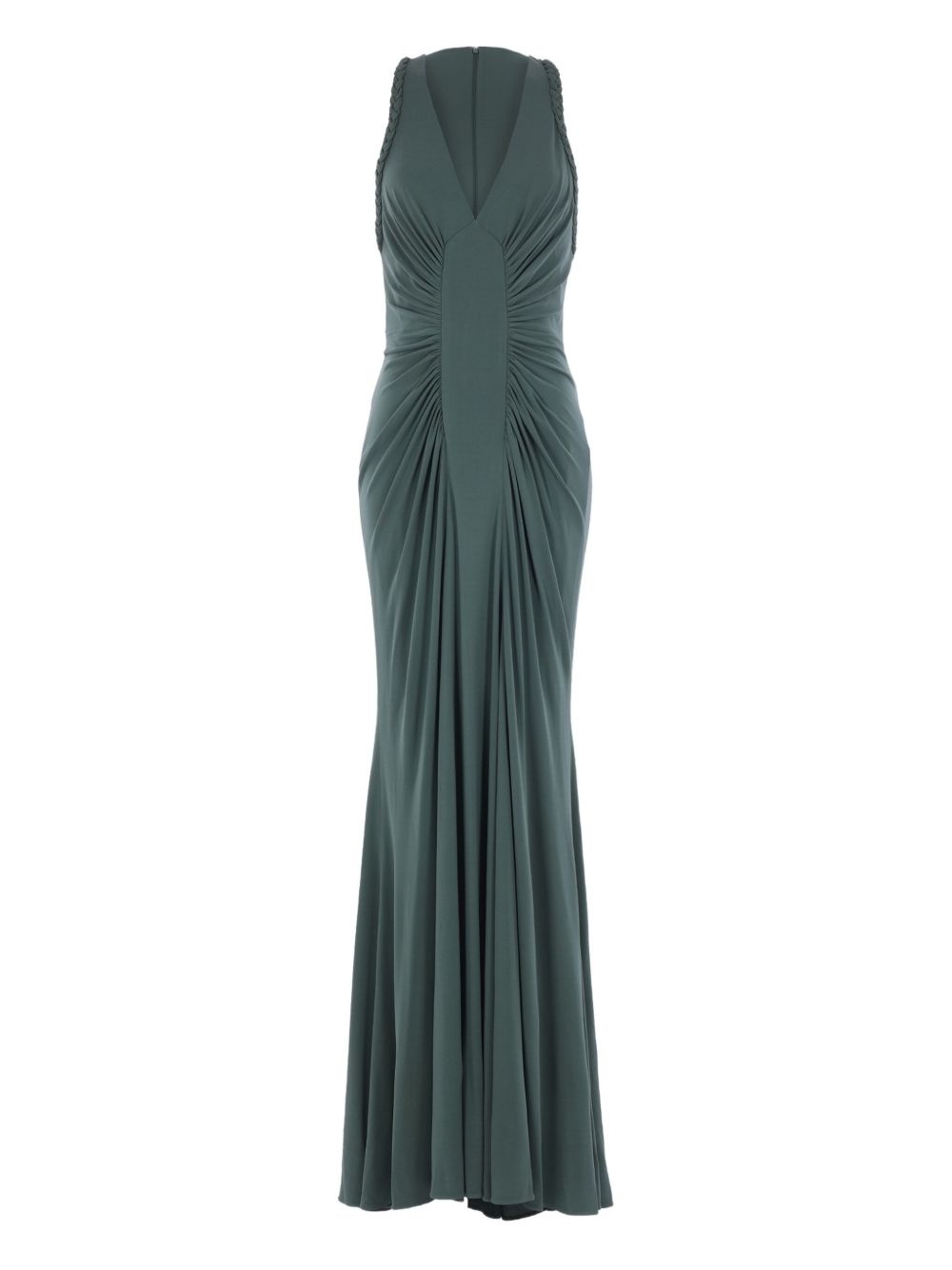 draped dress Highlights - Powder blue - V-neck - Sleeveless - Flared hem - Floor-length Imported Composition Viscose 100%