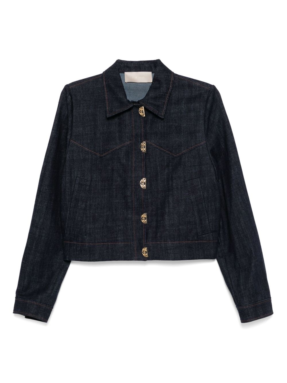 embellished denim jacket Highlights - Empire blue - Front press-stud fastening - Two side welt pockets - Buttoned cuffs Made In Italy Composition Organic Cotton 100% Washing instructions Machine Wash