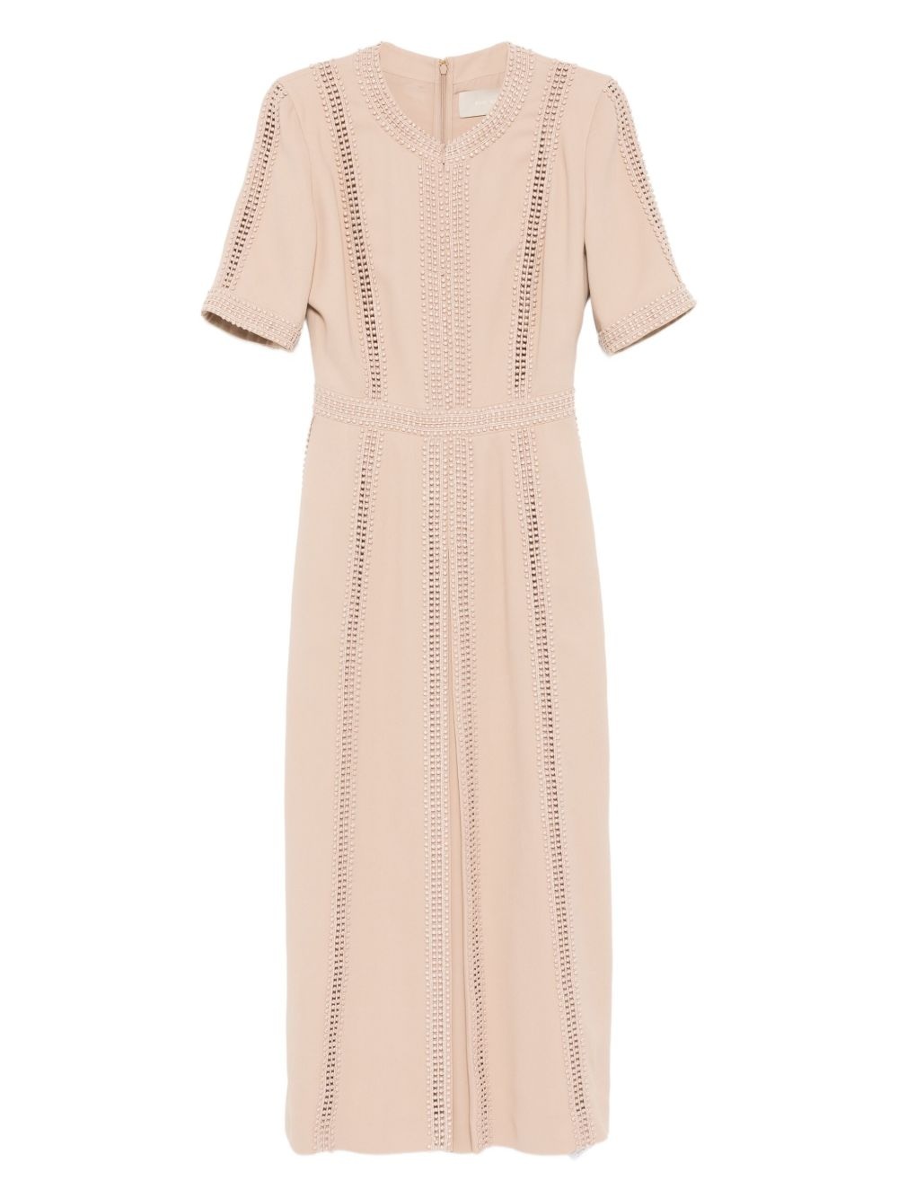 embellished-trim dress Highlights - Light brown - Concealed front zip fastening - Concealed rear hook and zip fastening - Short sleeves Made in Italy Composition Outer: Viscose 50%, Acetate 47%, Elastane 3% Lining: Acetate 74%, Silk 26% SIZE & FIT Model measurements Height 5 ft 9 in(1.76 m) Bust/Chest 31.1 in(79 cm) Hips 35.03 in(89 cm) Waist 24.4 in(62 cm) FittingInformation Designed for a close fit at the chest and waist with a loose fit at the hip Made from a midweight non-stretch fabric Washing instructions Dry Clean Only