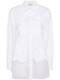 embroidered cotton shirt Highlights - Powder white - Organic cotton-silk blend - Poplin texture - Floral embroidery - Concealed front button fastening - Classic collar - Long sleeves - Buttoned cuffs - Curved hem Made in Italy Composition Organic Cotton 93%, Silk 7%