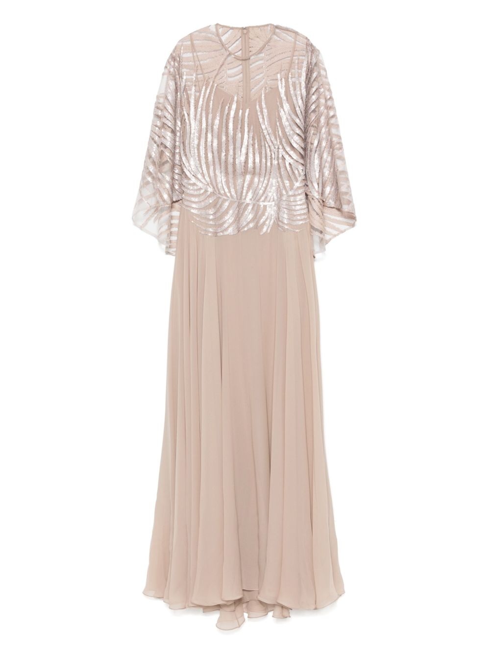 embroidered maxi dress Highlights - Blush beige - Concealed rear zip fastening - Rear cape insert - Partial lining - Flared hem Imported Composition Outer: Silk 87%, Polyester 9%, Nylon 2%, Rayon 2% Lining: Silk 100% SIZE & FIT Model measurements Height 5 ft 10 in(1.79 m) Bust/Chest 35.43 in(90 cm) Hips 35.03 in(89 cm) Waist 25.19 in(64 cm) FittingInformation Designed for a close fit at the chest and waist with a loose fit at the hip Made from a midweight non-stretch fabric