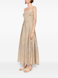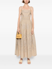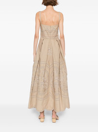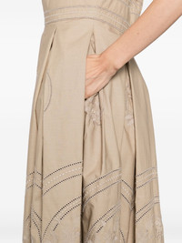 embroidered ong dress Highlights - Beige - Concealed rear hook and zip fastening - Sleeveless - Square neck - Two side inset pockets Imported Composition Organic Cotton 52%, Polyester 48% SIZE & FIT Model measurements Height 5 ft 10 in(1.78 m) Bust/Chest 29.92 in(76 cm) Hips 34.64 in(88 cm) Waist 24.8 in(63 cm) FittingInformation Designed for a close fit at the chest with a loose fit over the waist and hips Made from a midweight non-stretch fabric Washing instructions Dry Clean Only