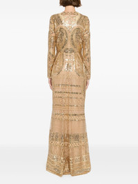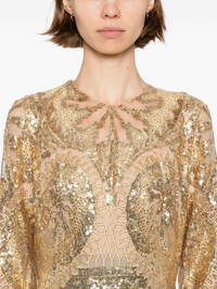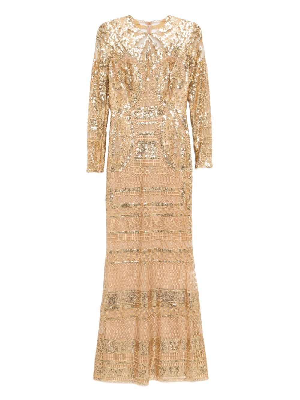 embroidered tulle long dress Highlights - Gold-tone - Concealed rear hook and zip fastening - Crew neck - Long sleeves Imported Composition Polyester 44%, Silk 42%, Rayon 14% SIZE & FIT Model measurements Height 5 ft 10 in(1.78 m) Bust/Chest 29.92 in(76 cm) Hips 34.64 in(88 cm) Waist 24.8 in(63 cm) FittingInformation Designed for a close fit at the chest with a loose fit over the waist and hips Made from a midweight non-stretch fabric Washing instructions Dry Clean Only