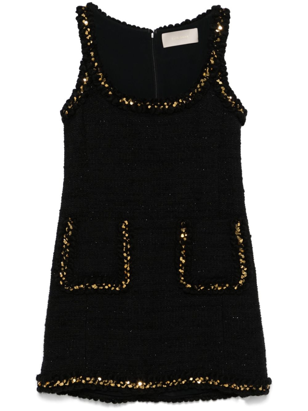 embroidered tweed mini dress Highlights - Black - Concealed rear hook and zip fastening - Two front patch pockets - Full lining - Sequin embellishment Imported Composition Outer: Polyester 51%, Cotton 39%, Wool 7%, Polyamide 3% Lining: Acetate 74%, Silk 26%