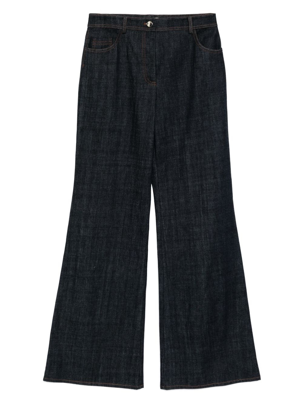 flared jeans Highlights - Navy blue - Concealed front button, hook and zip fastening - Two side slash pockets Imported Composition Outer: Cotton 100% Lining: Cotton 100% SIZE & FIT Model measurements Height 5 ft 10 in(1.77 m) Bust/Chest 30.7 in(78 cm) Hips 35.82 in(91 cm) Waist 21.25 in(54 cm) FittingInformation Designed with a flared hem, these jeans allow for a close fit at the waist with a slim fit over the leg and widening towards the hem Sturdy and hard-wearing, this denim piece offers no stretch