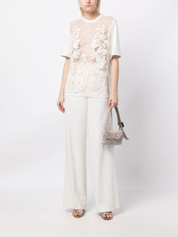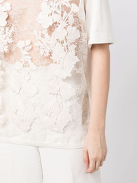 floral-appliqué sheer T-shirt