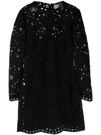 floral-macrame weaved minidress Highlights - Black - Wool blend - Floral motif - Macrame detailing - Round neck - Rear zip fastening - Long sleeves - Scallop hem - Internal slip dress Made in Italy Composition Outer: Acrylic 44%, Wool 43%, Polyester 13% Lining: Polyester 100% Washing instructions Dry Clean Only