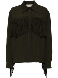 fringed cady jacket Highlights - Juniper green - Fringed edge - Concealed front button fastening - Classic collar - Long sleeves - Buttoned cuffs - Straight hem - Full lining Made in Italy Composition Outer: Polyester 52%, Virgin Wool 43%, Elastane 5% Lining: Acetate 74%, Silk 26%