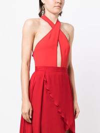halter keyhole body suit red halterneck tie fastening crossover neck open back cut-out detailing Made in Italy Composition Body: Viscose 80%, Polyester 20% SIZE & FIT Model measurements Height 5 ft 9 in(1.76 m) Bust/Chest 29.13 in(74 cm) Hips 33.07 in(84 cm) Waist 22.83 in(58 cm) FittingInformation This piece fits true to size. We recommend you get your regular size Cut for a close fit Made with a mid-weight fabric Washing instructions Hand Wash