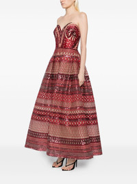 heart-shaped embroidered dress Highlights - Crimson red - Concealed rear hook and zip fastening - Two side slit pockets - Strapless Imported Composition Outer: Polyester 41%, Silk 19%, Rayon 18%, Polyamide 17%, Nylon 5% Lining: Silk 100% SIZE & FIT Model measurements Height 5 ft 9 in(1.76 m) Bust/Chest 31.1 in(79 cm) Hips 35.03 in(89 cm) Waist 24.4 in(62 cm) FittingInformation Designed for a close fit at the chest with a loose fit over the waist and hips Made from a midweight non-stretch fabric Washing instructions Dry Clean Only