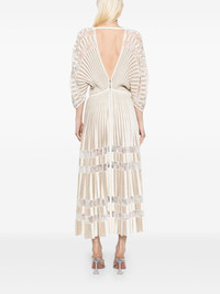 knit midi dress Highlights - Cream white - Rear zip fastening - V-neck - Pleat detailing Made in Italy Composition Outer: Viscose 94%, Polyester 4%, Nylon 1% Metal 1% SIZE & FIT Model measurements Height 5 ft 9 in(1.76 m) Bust/Chest 31.1 in(79 cm) Hips 35.03 in(89 cm) Waist 24.4 in(62 cm) FittingInformation Designed for a close fit at the chest and waist with a loose fit at the hip Made with a midweight knit, this piece offers some stretch