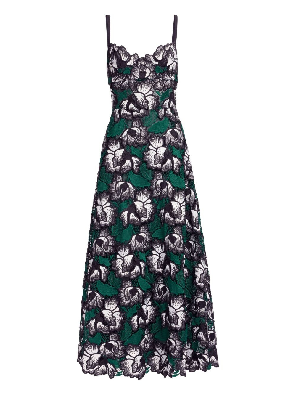 macrame floral midi dress Highlights - Multicolour - Floral pattern - Belt - Thin straps - Sleeveless Imported Composition Outer: Silk 44%, Polyester 37%, Polyamide 19% Washing instructions Read Manufacturer Guidelines